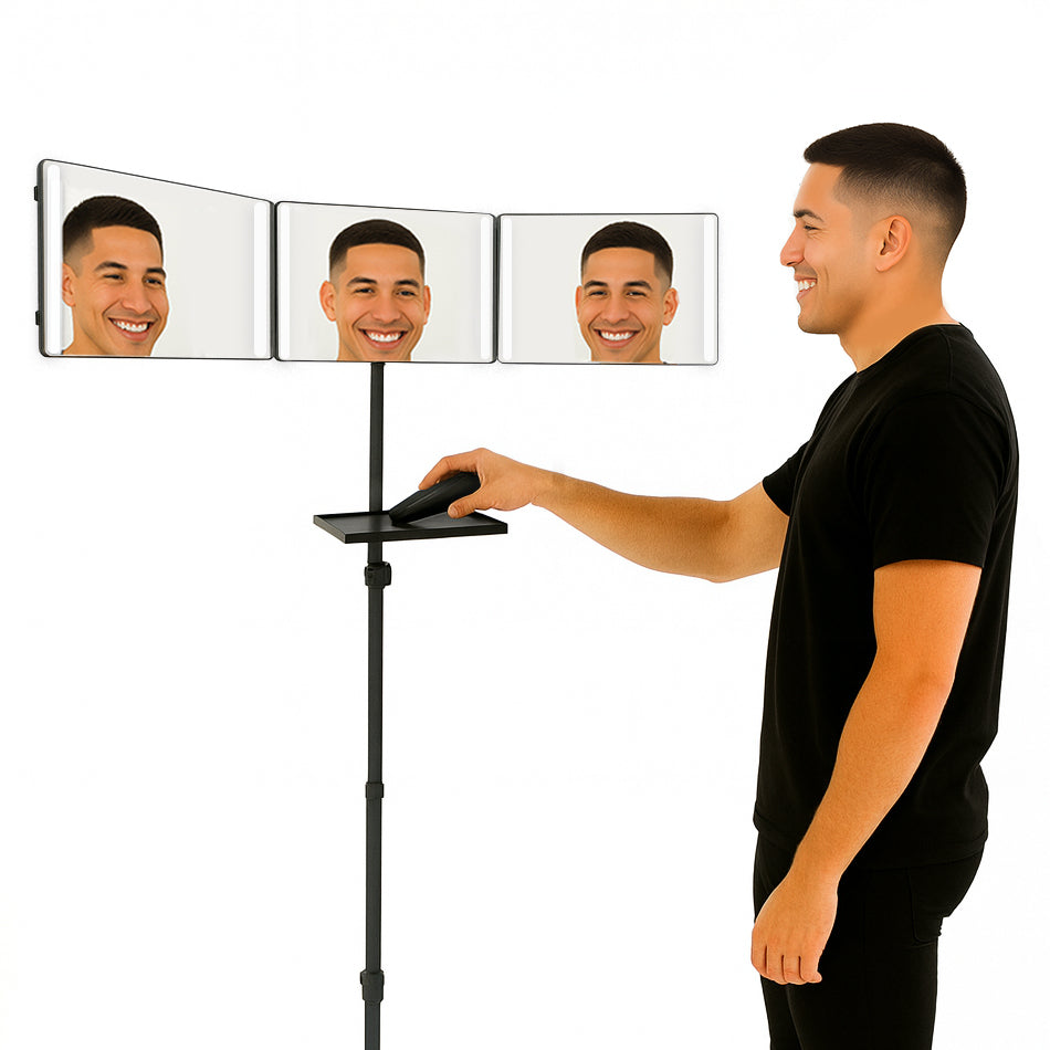 Full 360° View – Three-panel mirror design gives you complete control over your look. No blind spots.